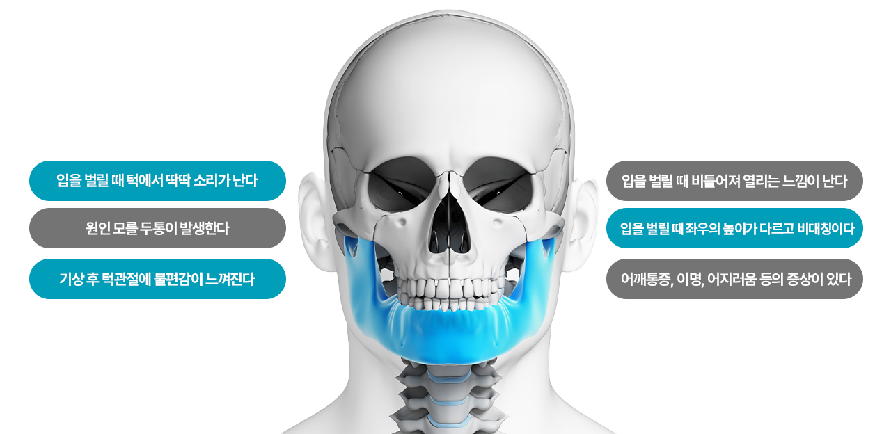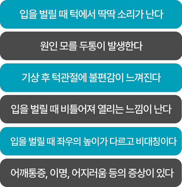 다음과 같은 증상이 있다면 턱관절질환의 의심해보세요!