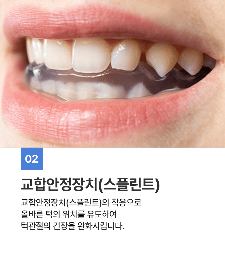 올바른 턱의 위치를 유도하여 턱관절의 긴장을 완화시킵니다.