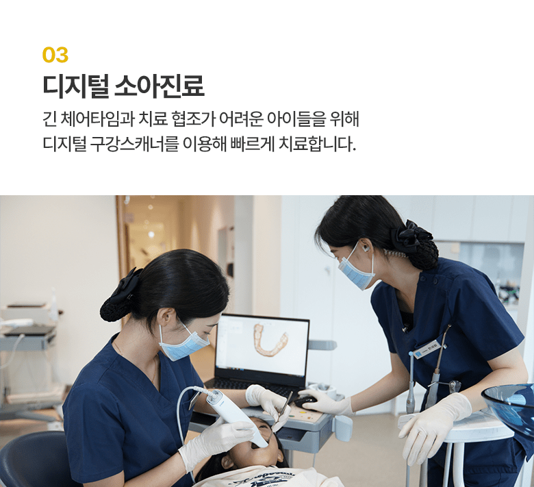 디지털 구강 스캐너를 이용해 빠르게 치료합니다.