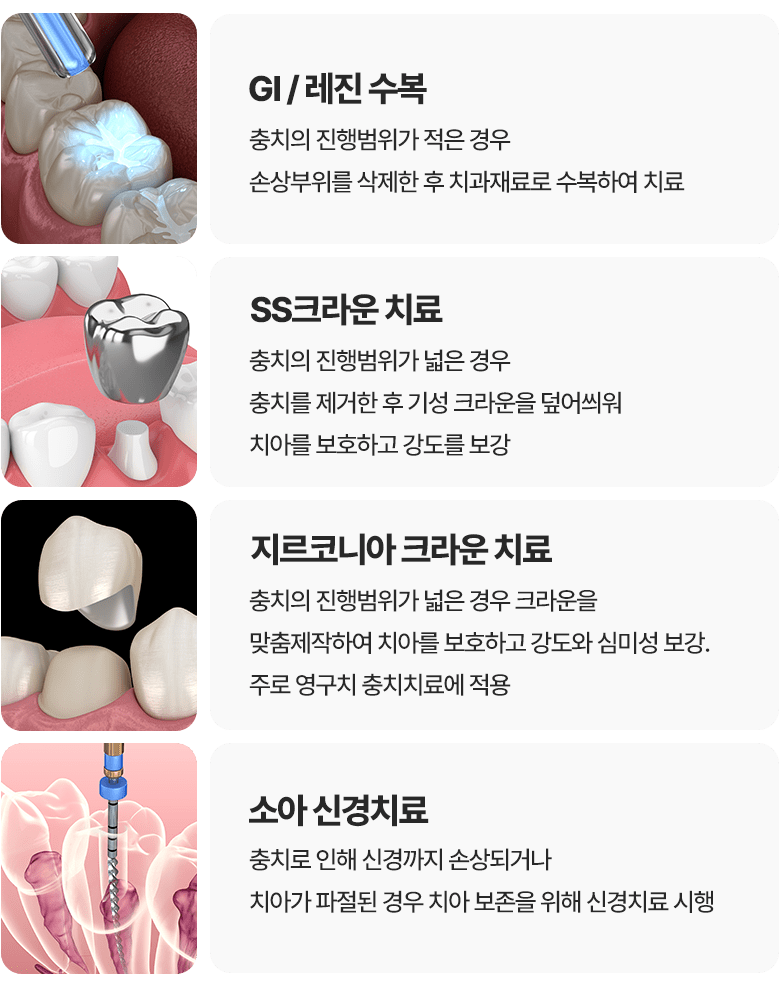 어린이 환자의 경우 치아의 특성, 생활습관, 관리 부족으로 인해