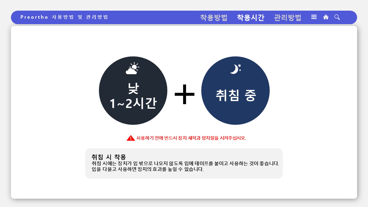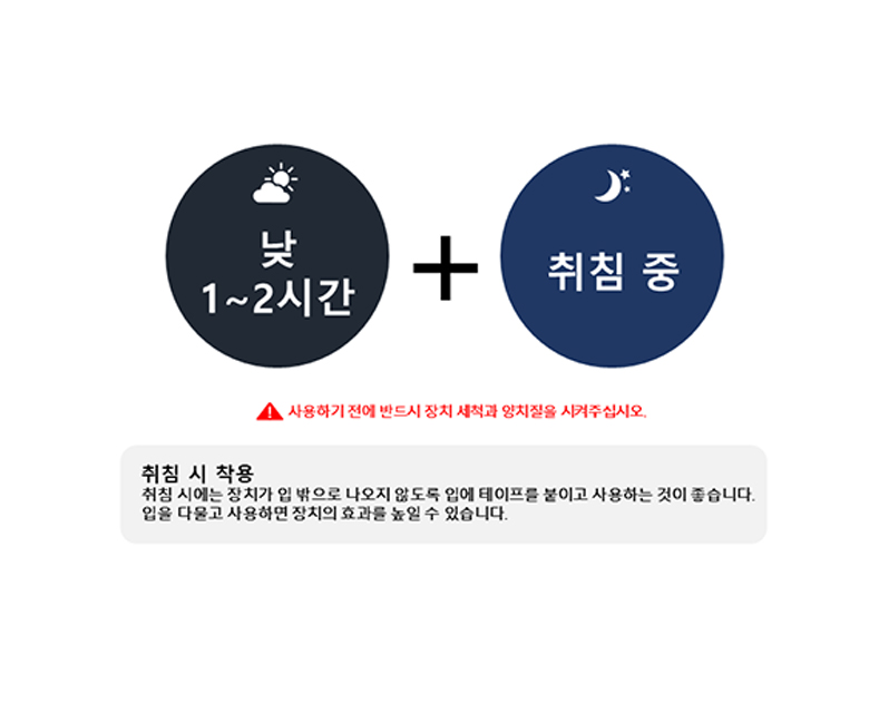 | 하루 1-2시간 + 수면 시 착용 | 착용시간 | 하루 20시간 이상 |