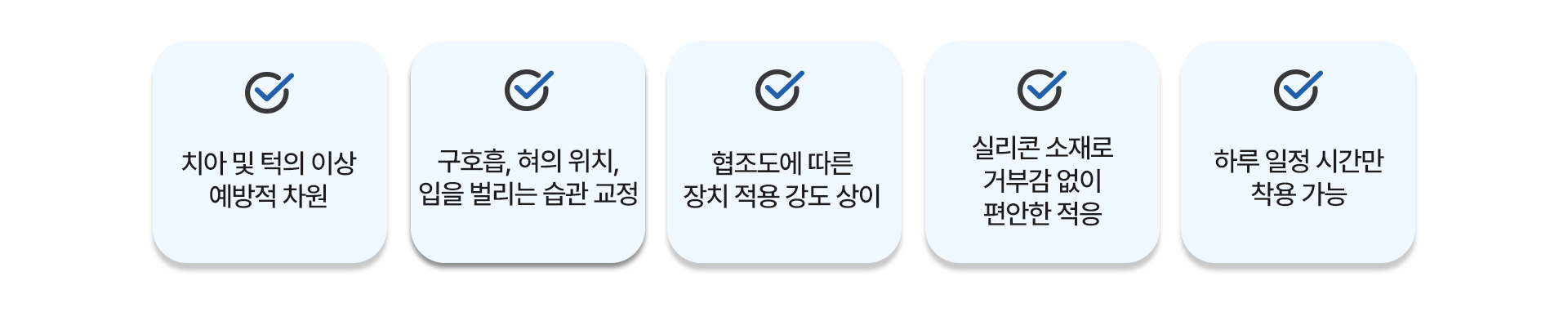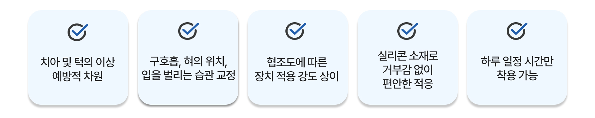 | 성장 방향 조절 및 근육 훈련 | 치료 효과 | 정밀한 치아이동 |