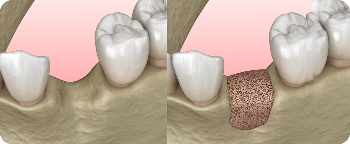 잇몸뼈가 소실된 부위에 뼈 이식재를 이식하고
