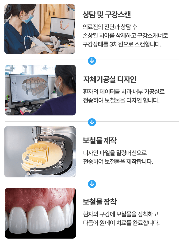 진단부터 보철물 부착까지 하루만에!